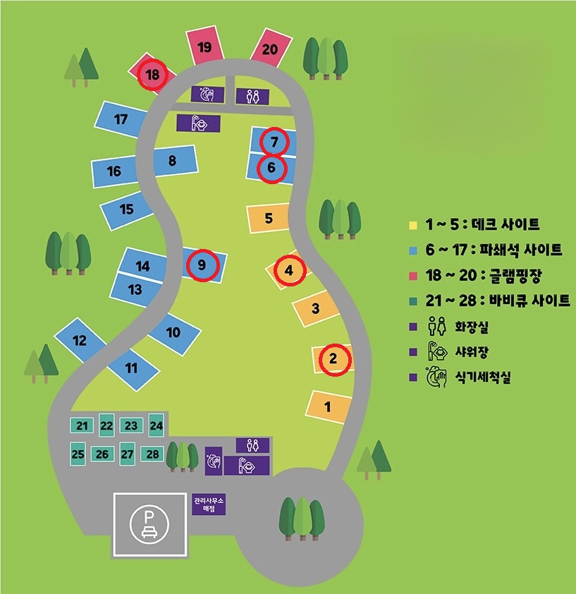 - 8, 10, 11, 17 장박예약이 완료된자리입니다.